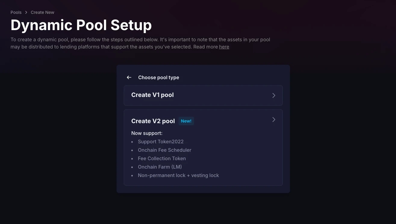 Anyone can create a DAMM v2 pool here: https://www.meteora.ag/pools/create When you are on the Dynamic Pool Setup page, select “Create V2 pool” to start creating a DAMM v2 pool.