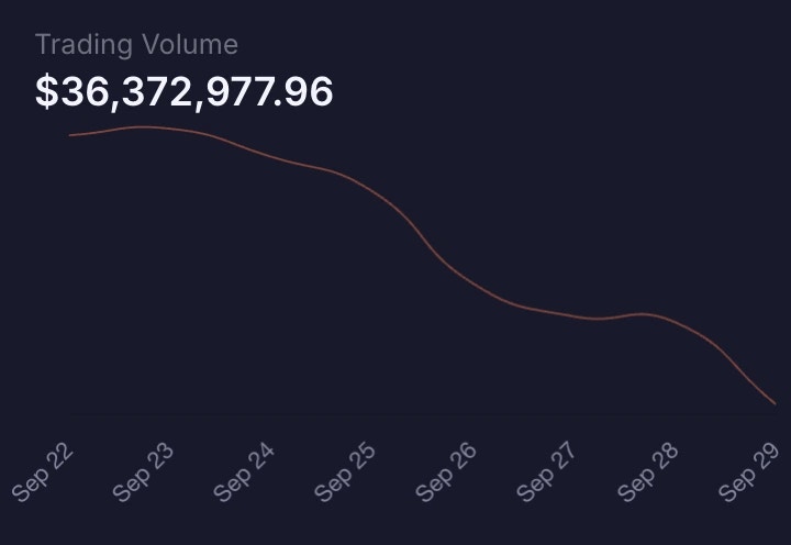 At the bottom left of the pool detail page, you can view the trading volume of the pool from the last 7 days.