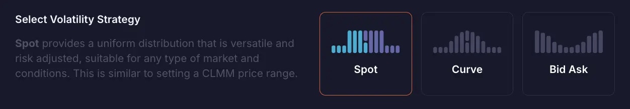 The Volatility Strategy represents how your liquidity gets allocated in the pool. If you change your Volatility Strategy, the shape of your liquidity distribution in the chart would also change.