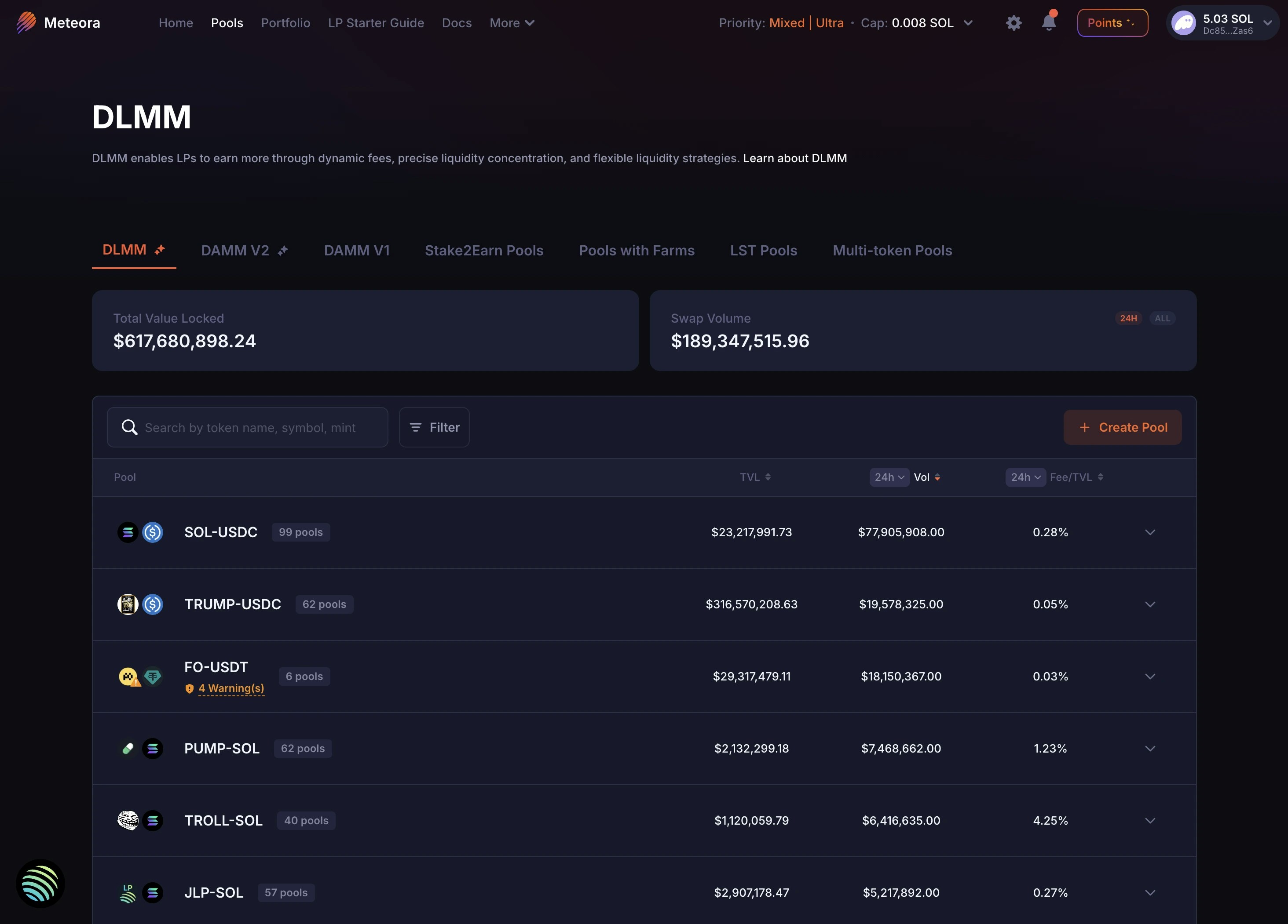 LPs can earn more with Dynamic Fees, which surge in response to real-time price volatility. For DLMM, Dynamic Fee includes the Base Fee.24h Fee